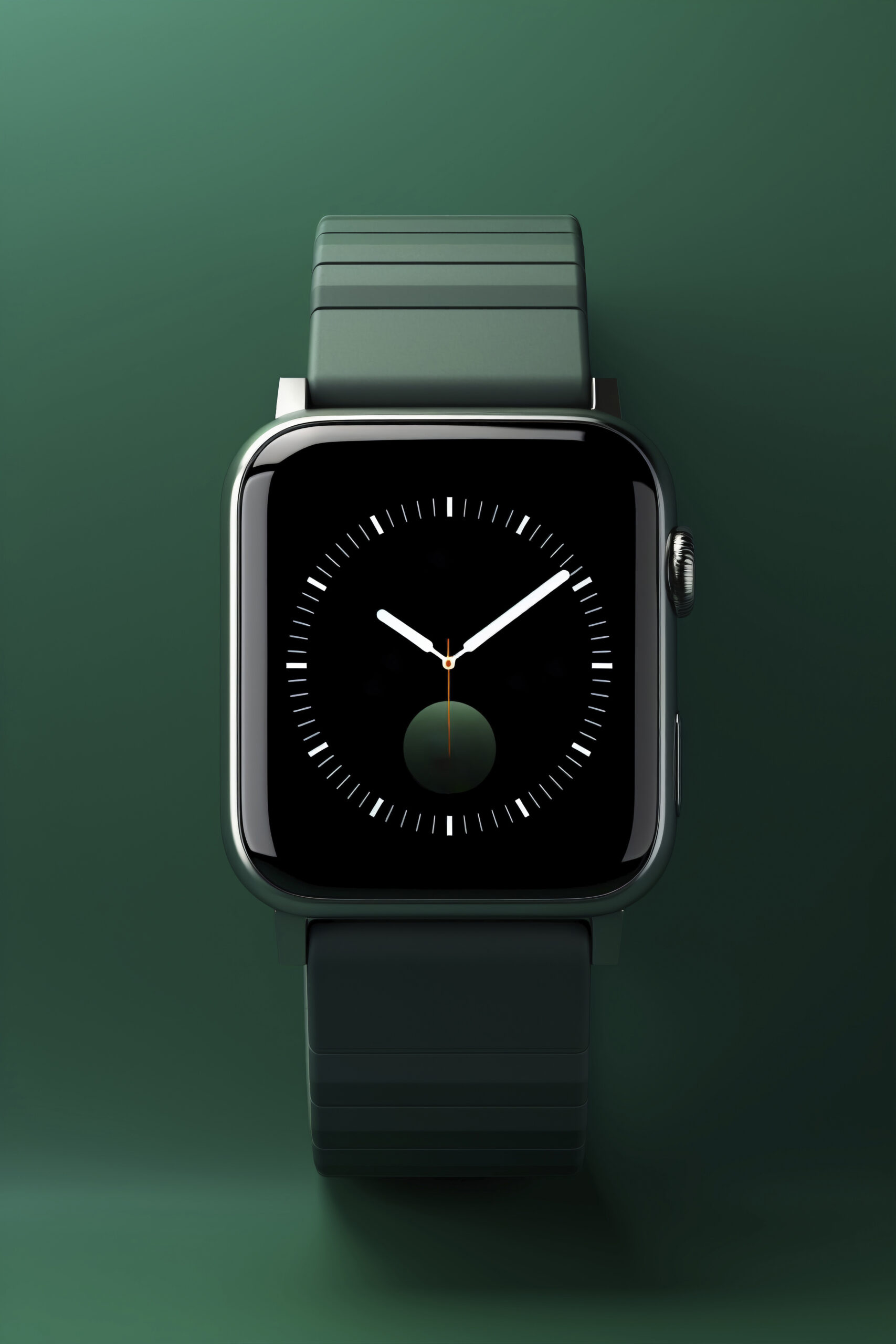 Advanced smartwatch with a dark green band, touch display, and fitness features like heart rate and step tracking.